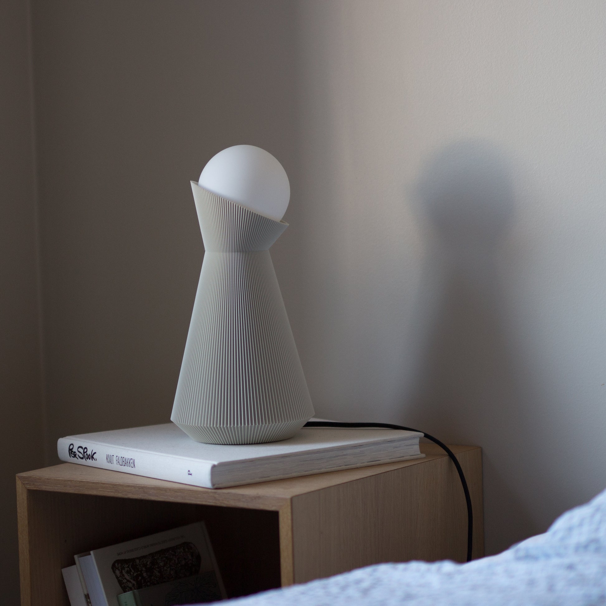 Each lamp is 3D-printed to order in our Norwegian studio using sustainable PLA. This plant-based, biodegradable material is derived from renewable resources such as corn starch and sugarcane. Because of this process, production is both small-scale and low-waste, ensuring that thoughtful design also respects the planet.